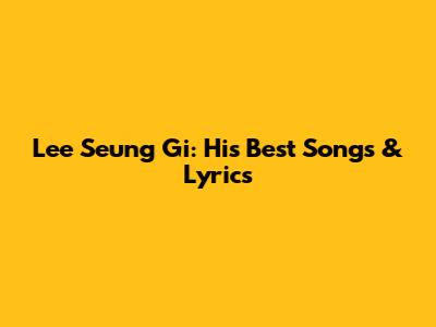 Lee Seung Gi: His Best Songs & Lyrics