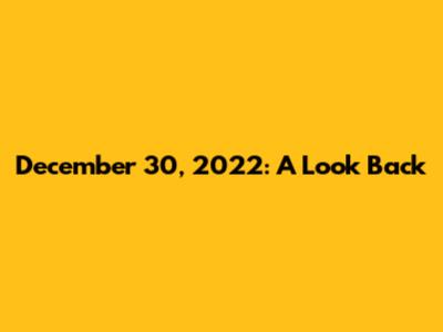 What Happened on December 30, 2022?