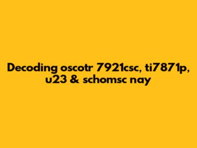 Alright, guys, let's dive into decoding these seemingly random strings: oscotr 7921csc, ti7871p, u23 scvssc, and schomsc nay. At first glance, they might look like some sort of secret code or a jumble of characters, but often these types of strings are part numbers, model identifiers, or specific codes related to electronic components, software, or other technical products. So, let's break down each one and see if we can figure out what they might refer to.