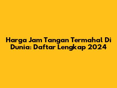 Harga Jam Tangan Termahal Di Dunia: Daftar Lengkap 2024