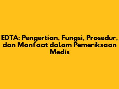 EDTA: Pengertian, Fungsi, Prosedur, Dan Manfaat Dalam Pemeriksaan Medis