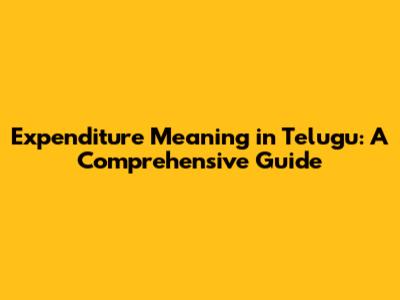 Expenditure Meaning in Telugu: More Than Just Spending