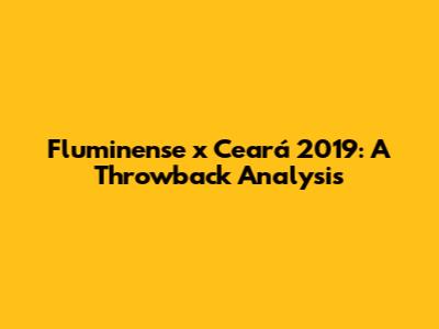 Fluminense Vs Ceará 2019: A Throwback Analysis