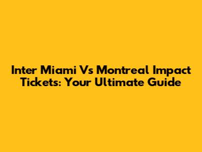 Inter Miami Vs Montreal Impact Tickets: Your Ultimate Guide