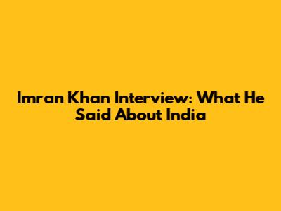 Imran Khan Interview: What He Said About India