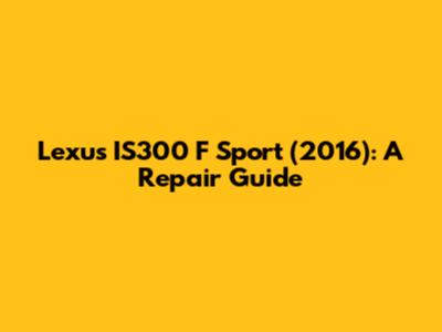 Lexus IS300 F Sport (2016): A Repair Guide