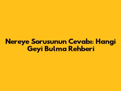 Nereye Sorusunun Cevabı: Hangi Geyi Bulma Rehberi