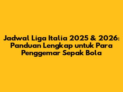 Halo, para penggemar sepak bola Italia! Apakah kalian sudah tidak sabar menantikan aksi-aksi seru di Serie A musim mendatang? Kalian berada di tempat yang tepat! Di artikel ini, kita akan membahas secara mendalam mengenai jadwal Liga Italia 2025 dan jadwal Liga Italia 2026. Mulai dari detail jadwal pertandingan, tim-tim yang patut diwaspadai, hingga tips untuk tidak ketinggalan satu pun momen penting. Mari kita bedah bersama-sama!