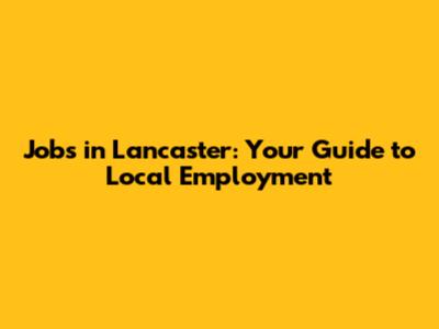 Jobs In Lancaster: Your Guide To Local Employment