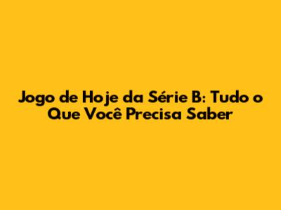 Onde Assistir ao Jogo de Hoje da Série B