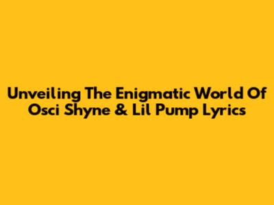 Unveiling The Enigmatic World Of Osci Shyne & Lil Pump Lyrics