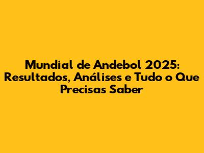 O Mundial de Andebol 2025 promete ser um evento épico, reunindo as melhores seleções do mundo na busca pelo título de campeão. Se és fã de andebol ou simplesmente queres estar por dentro de tudo, este guia completo é para ti. Aqui, vamos mergulhar nos resultados, nas análises, nas estatísticas e em tudo o que precisas saber sobre esta competição emocionante. Prepara-te para uma experiência incrível, cheia de ação, emoção e muita informação útil!
