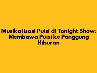Musikalisasi puisi di Tonight Show telah membuktikan dirinya sebagai sebuah fenomena yang mampu menggabungkan keindahan puisi dengan daya tarik hiburan. Melalui pendekatan yang kreatif dan inovatif, acara ini telah berhasil menjembatani kesenjangan antara dunia sastra dan dunia hiburan, membuka pintu bagi lebih banyak orang untuk menikmati dan mengapresiasi puisi.