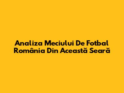 Analiza Meciului De Fotbal România Din Această Seară