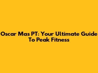 Oscar Mas PT: Your Ultimate Guide To Peak Fitness