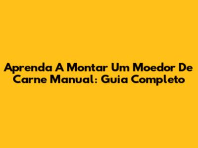 Aprenda A Montar Um Moedor De Carne Manual: Guia Completo