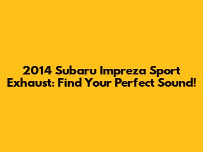 2014 Subaru Impreza Sport Exhaust: Find Your Perfect Sound!