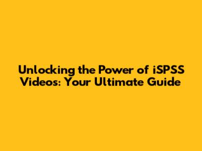 Unlocking The Power Of ISPSS Videos: Your Ultimate Guide