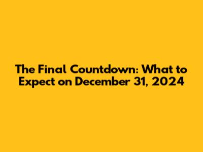 Hey guys! So, the big question on everyone's mind as we hurtle towards the end of the year is, "What's actually going down on December 31, 2024?" It’s that magical time when we’re all looking back at the year that was and getting super hyped for the fresh start that a new year brings. Whether you're planning a blow-out party, a cozy night in, or something totally out of the box, knowing what to expect can help you make the most of this epic night. Let’s dive into the possibilities and help you craft an unforgettable New Year's Eve!