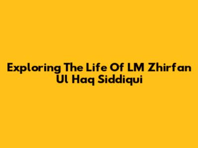 Exploring The Life Of LM Zhirfan Ul Haq Siddiqui
