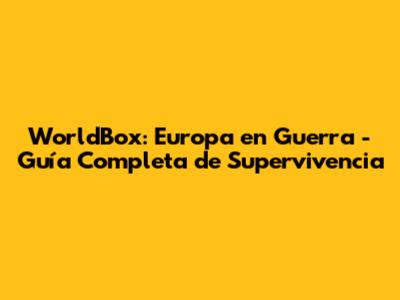 WorldBox: Europa En Guerra - Guía Completa De Supervivencia